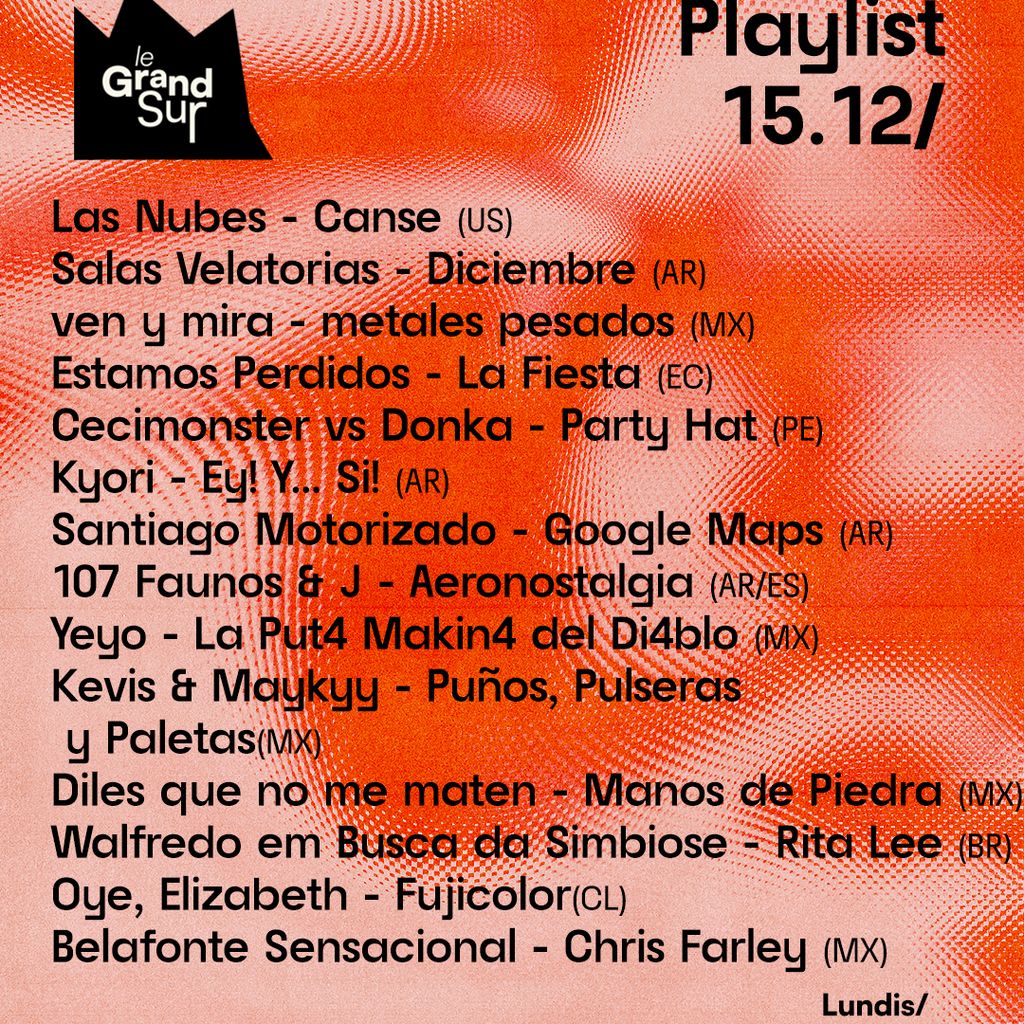 Le Grand Sur explore l'état actuel du rock indépendant sud-américain. Dans cet épisode, nous entendrons: Las Nubes, Salas Velatorias, ven y mira, Estamos Perdidos, Cecimonster vs Donka, Kyori, Santiago Motorizado, 107 Faunos, Yeyo, Kevis y Maykyy, Diles que no me maten, Walfredo em busca da siombiose, Oye Elizabeth, Belafonte Sensacional, Mabe Fratti.